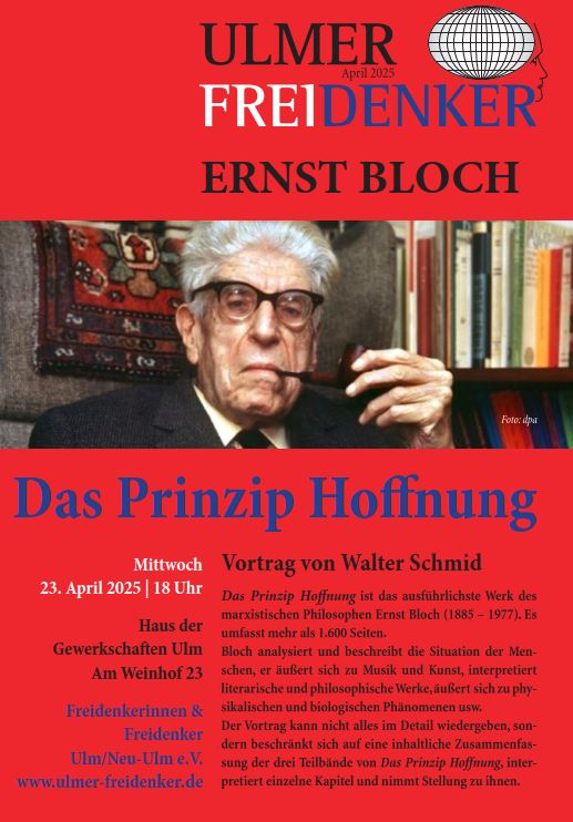 Vortrag von Walter SchmidMittwoch, 23. April 2025 um 18 Uhr im Haus der Gewerkschaften Ulm (Am Weinhof 23) Das Prinzip … Ernst Bloch. Das Prinzip Hoffnung weiterlesen
